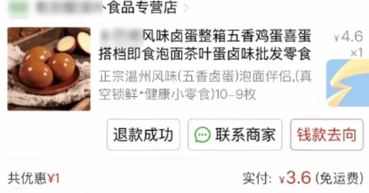 近日河南一男子在网购平台花费3.6元购买卤蛋,商品页面标注为“10-9枚”。他原以为会收到9至10枚卤蛋,收货后却发现仅有1枚。