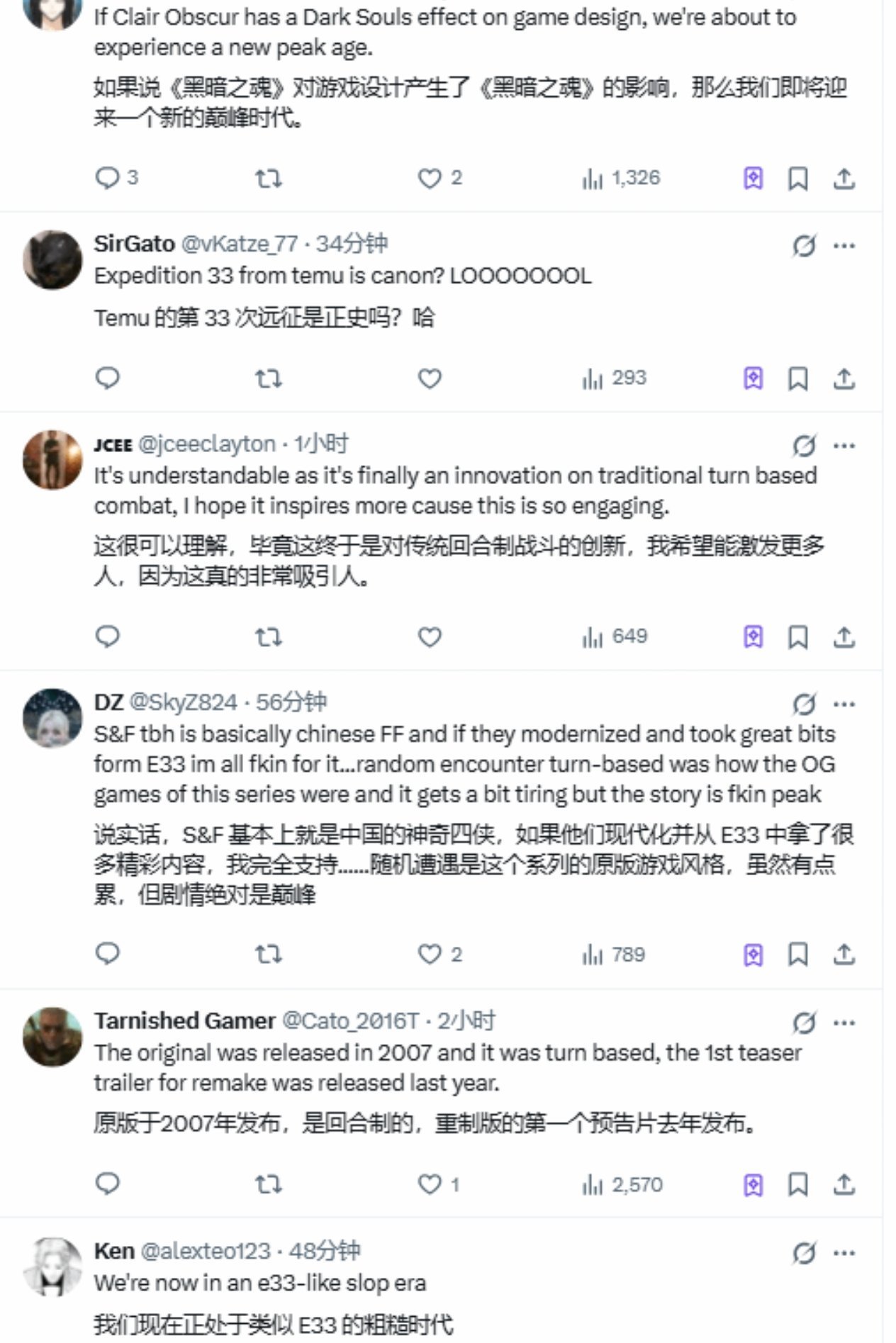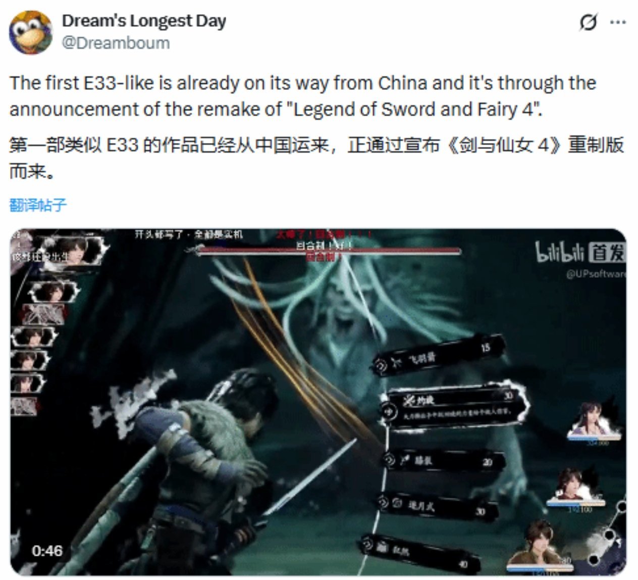 海外社交平台上,部分玩家迅速指出该作战斗机制与TGA年度最佳RPG《光与影:33号远征队》高度相似。有国外博主直言:“中国版的‘E33-like’已经在路上了,就在刚刚官宣的《仙剑4重制版》里。”有玩家分析认为,重制版放弃了原版ATB时间轴系统,转而采用更接近《最终幻想10》或《轨迹》系列的指令回合制,并加入了类似E33的即时格挡机制。激进粉丝吐槽道:“这简直就是中国版的E33克隆,只需看两秒UI和机制就能明白。”也有玩家持正面态度,认为在传统回合制中加入即时反馈是一种创新,表示“希望这种风格能流行起来”。还有玩家对“E33-like”标签表示不满,指出“回合制+即时动作”玩法可追溯到《马里奥与路易吉》系列。