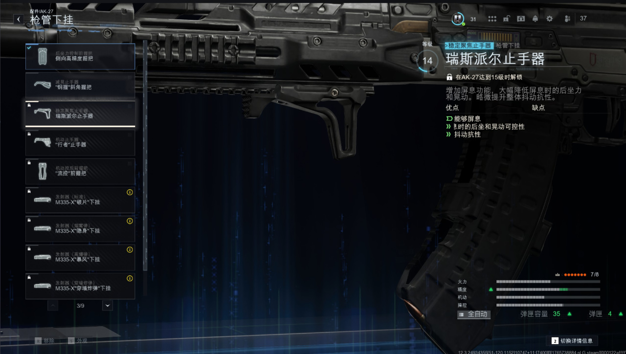 切换配件时,也能够很清晰地看出这个配件的优点以及在枪械面板上的提升与下降。