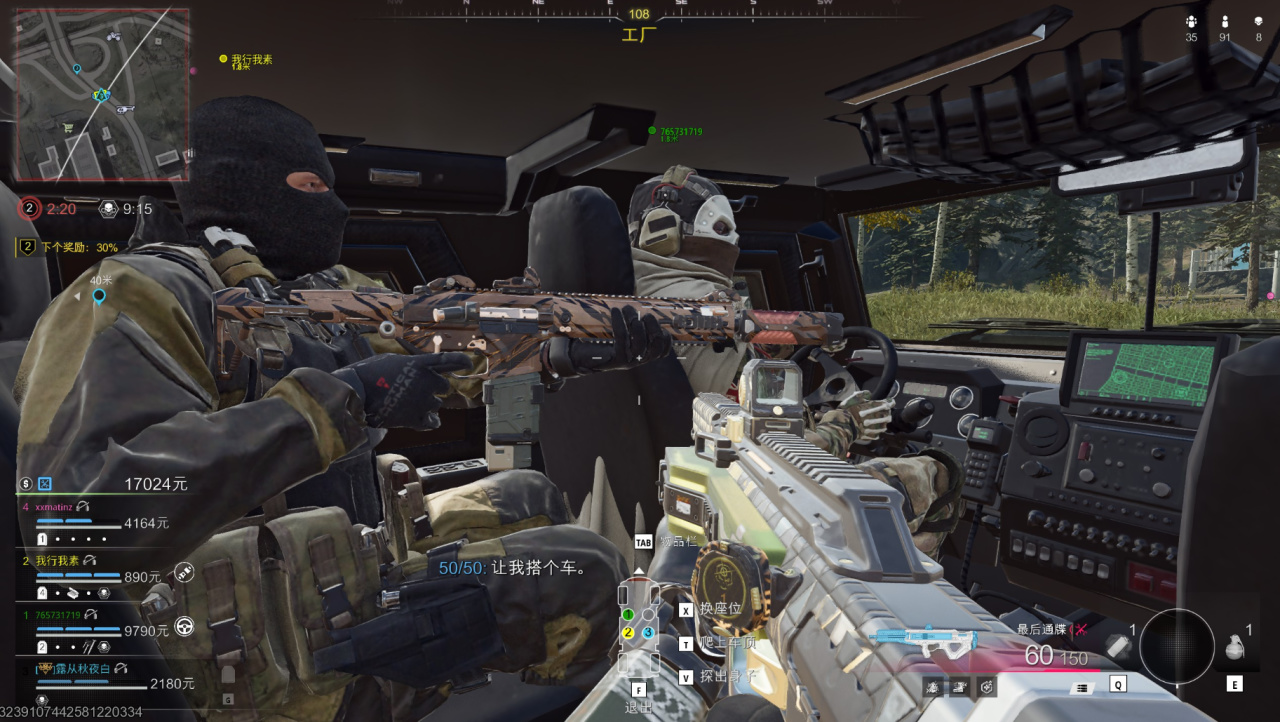 这一局虽然4个人都没有开麦,但是玩起来还是很配合的,都在一起走,跑圈也会特意开车捎上。