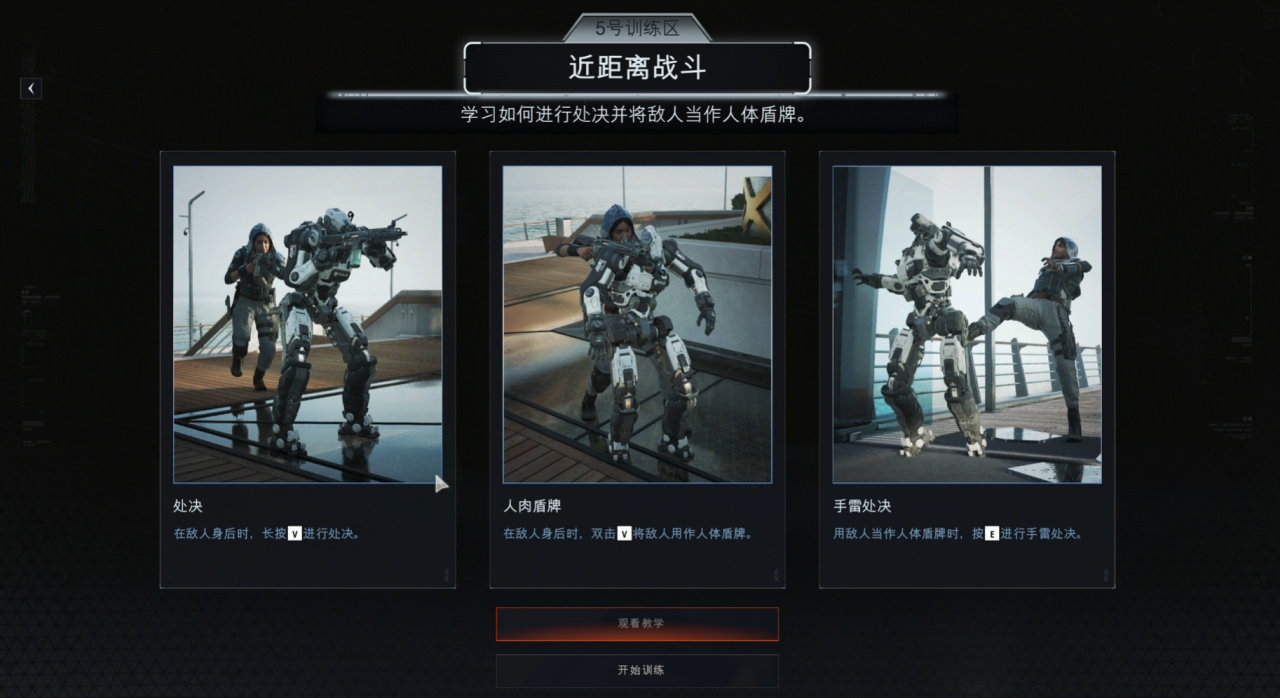 新手教程还是蛮细致的,文本讲解+视频演示,介绍了游戏的基础操作、战术装备的使用、近战处决等。
