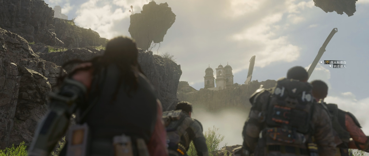 我本来以为使命召唤都是那种现代枪械战争的故事,可这里确是光怪陆离,天上会往下掉大刀、巨石会在天上飞、许多的怪物还有超级大的花。