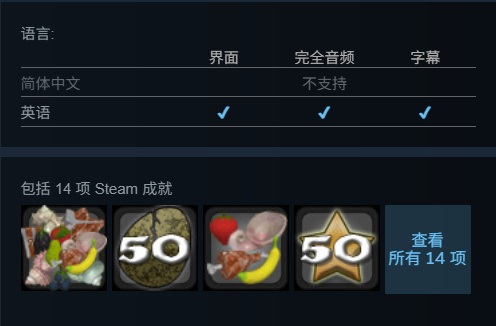 游戏包括14项Steam成就,但不支持简体中文