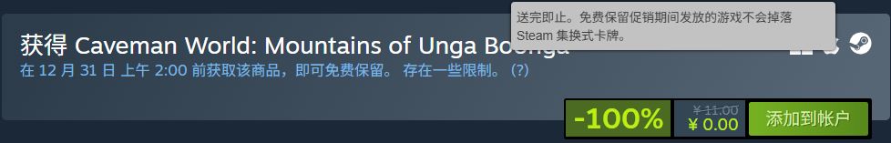 原价11元的Caveman World: Mountains of Unga Boonga,于北京时间12.31,2:00截止免费领取!