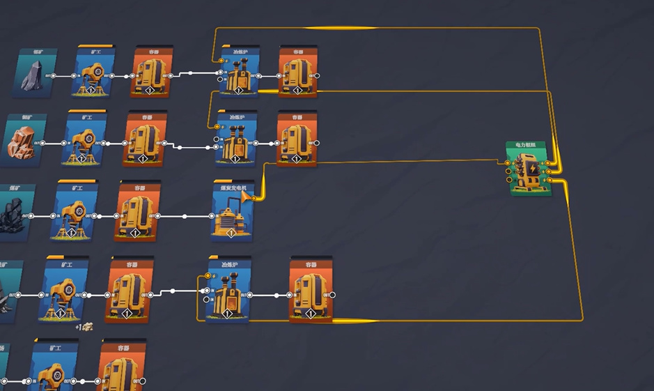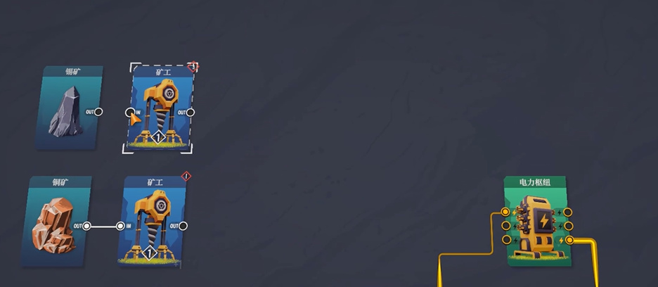 首先在这款游戏里面,各项资源其实玩家是可以直接获得的,毕竟是卡牌,所以游戏当中并没有那种资源数量的巨大限制,我们可以先从基础的电力开始发展,设置各种各样的枢纽进行连接。