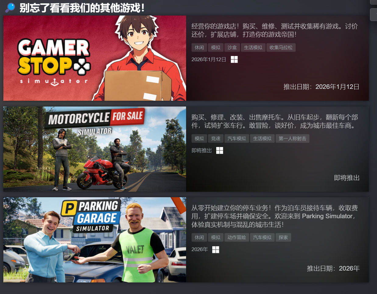 而且游戏制作组对于各种模拟类的游戏还是比较熟悉的,我们也可以在制作组的游戏里面看到很多有意思的设计,个人感觉游戏的未来还是很值得期待一下的。