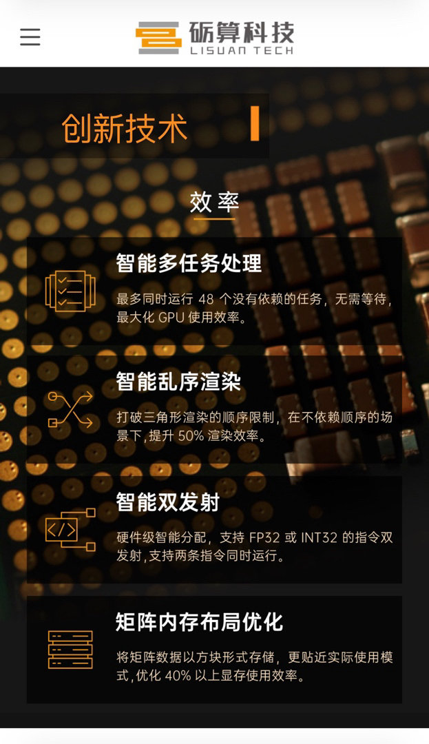 7G100 系列是砺算科技全自研 6nm 高性能图形 GPU,从指令集到计算核心完全由自主设计,基于自研 TrueGPU 天图架构,并自研指令集、自研软件栈,号称多重性能优势达到“国际主流、国内领先水平”