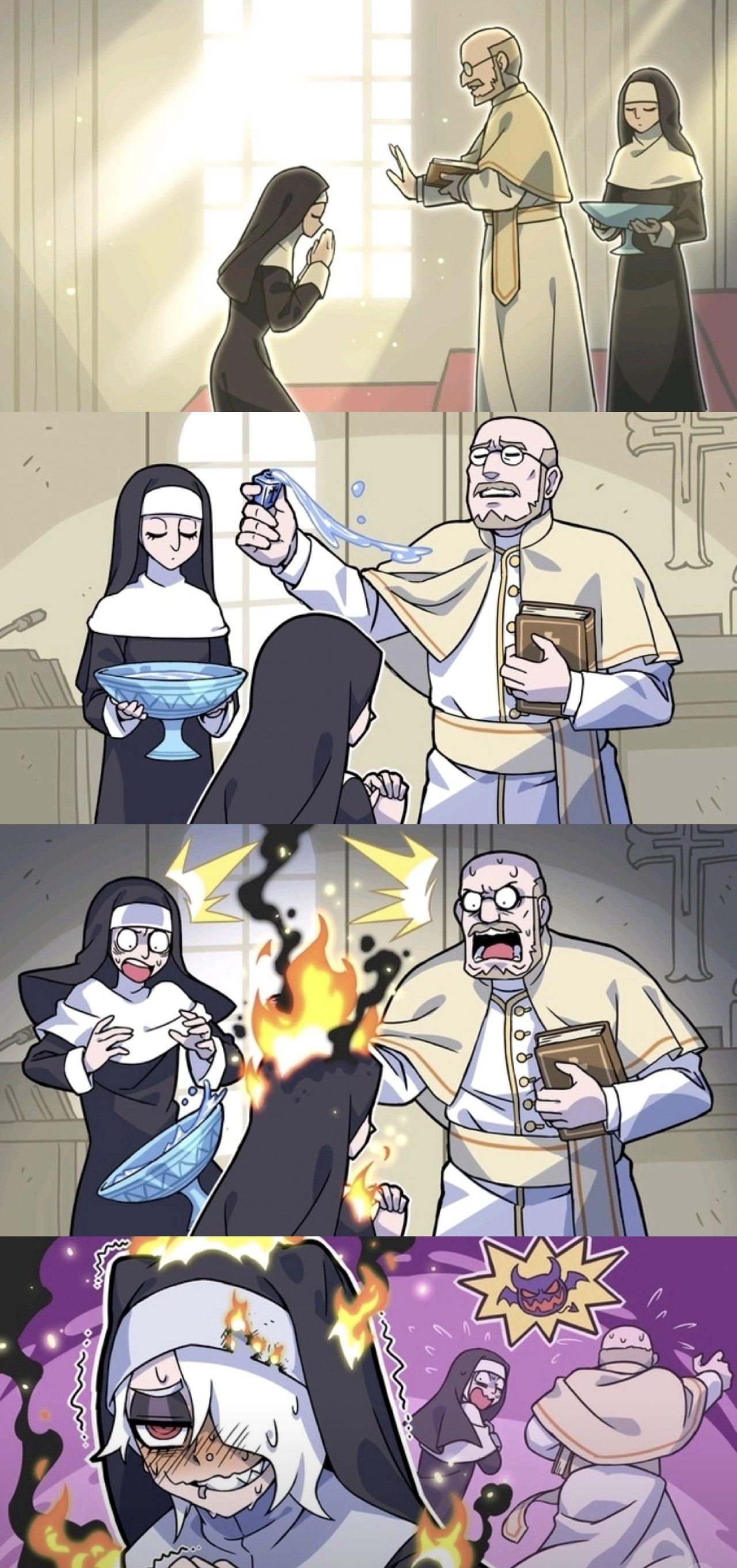兩者接觸,如同光與暗相遇,會產生激烈的“排異反應”。在信仰體系中,邪惡無法容忍神聖的存在。