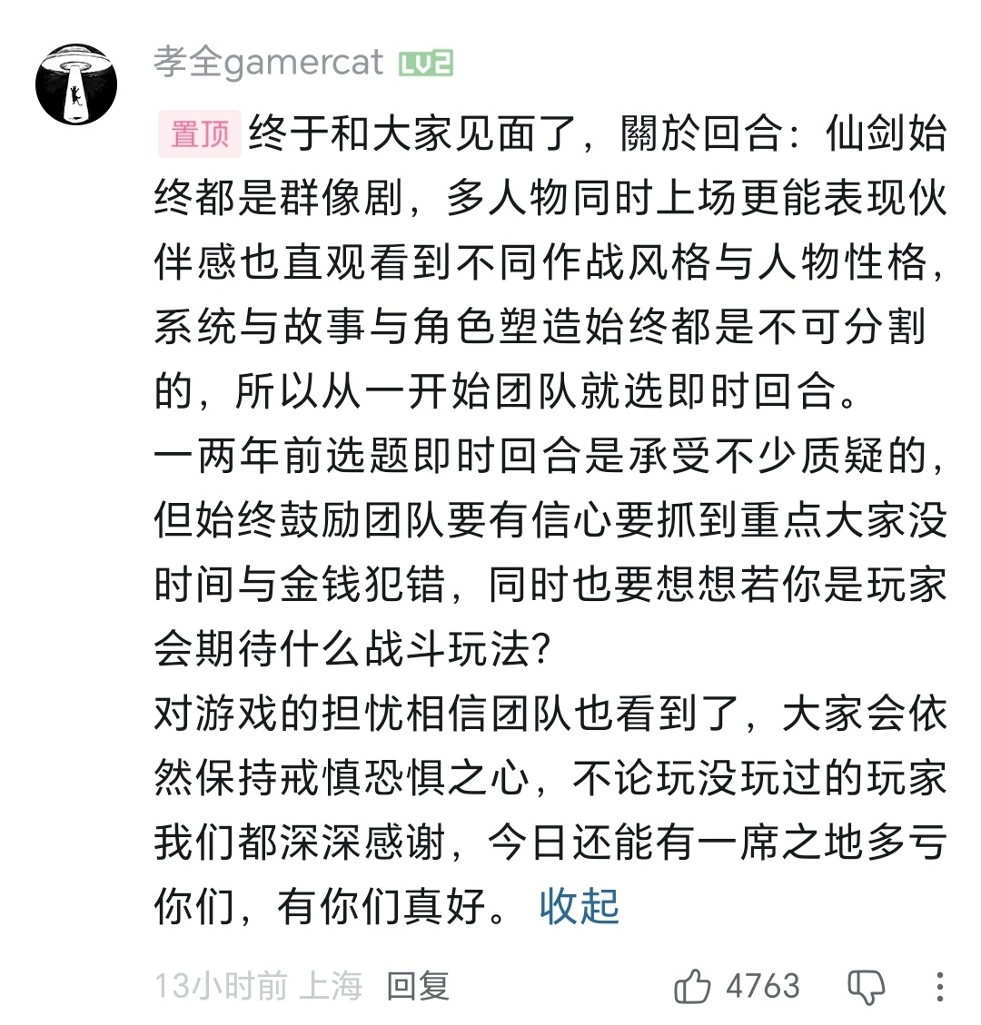 “《仙剑》始终都是群像剧,多人物同时上场更能表现伙伴感,也能直观看到不同作战风格与人物性格。系统与故事与角色塑造始终都是不可分割的,所以从一开始团队就选即时回合。”