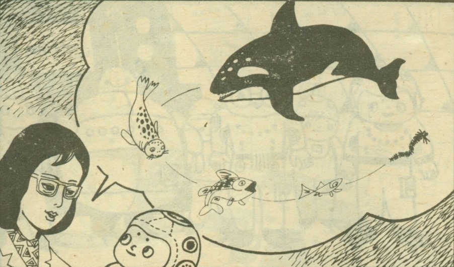 彭教授却在给潜水娃上课,告诉他:“虎鲸吃海兽,海兽吃大鱼,大鱼吃小鱼,小鱼吃浮游生物,形成了一条食物链。这是海洋生物界的一条规律···”