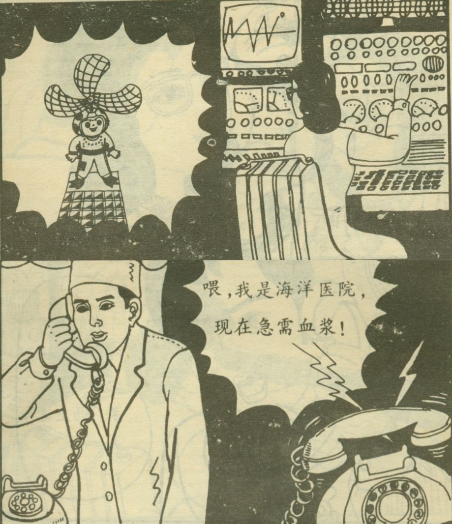 这时,海洋研究所的电话铃响了,原来是滨海医院打来的。他们急需给重伤病人输血,请求海洋研究所支援。值班人员请示彭教授后,回复:我们刚用海带加工出一批代用血浆,马上送去!
