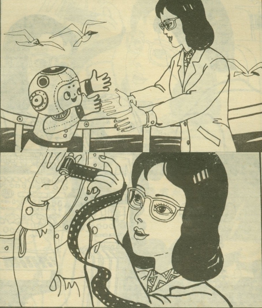 彭教授从潜水娃身上取出胶卷和录音带。丰富的资料使她兴高采烈,立刻回到研究室和大家分头整理。(早期的视频音频的记录媒介还是胶卷和录音带,虽然和现在的数字存储不可相比,但在当年看到这些还是很先进的。)