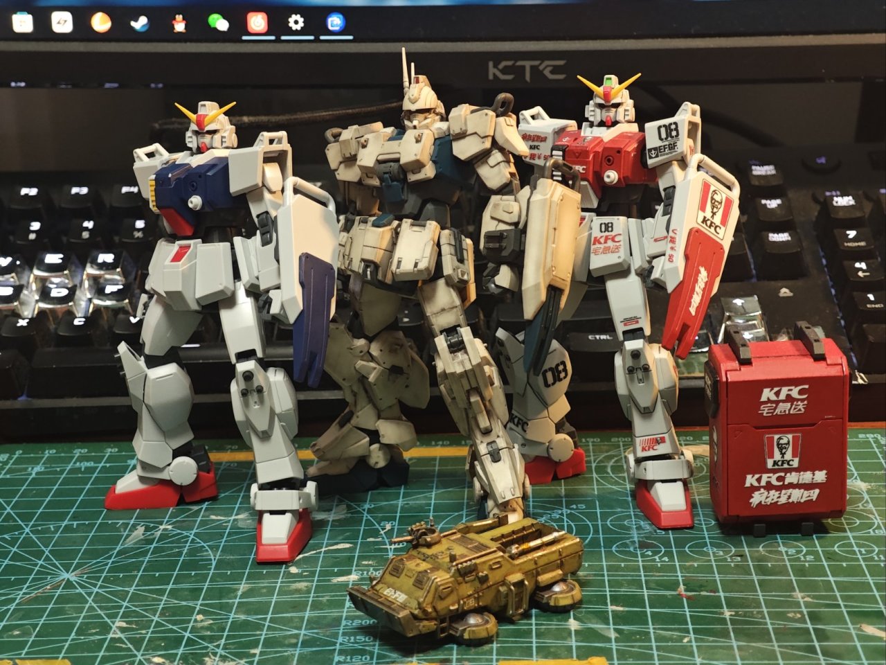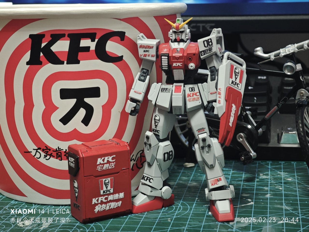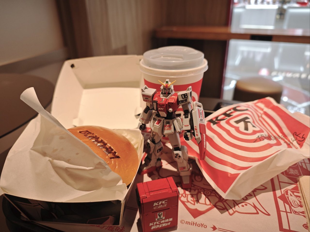 3月肯德基x高達聯動,帶着塗好的陸戰高達kfc配色去店裏喫,汁汁嫩牛堡好喫捏