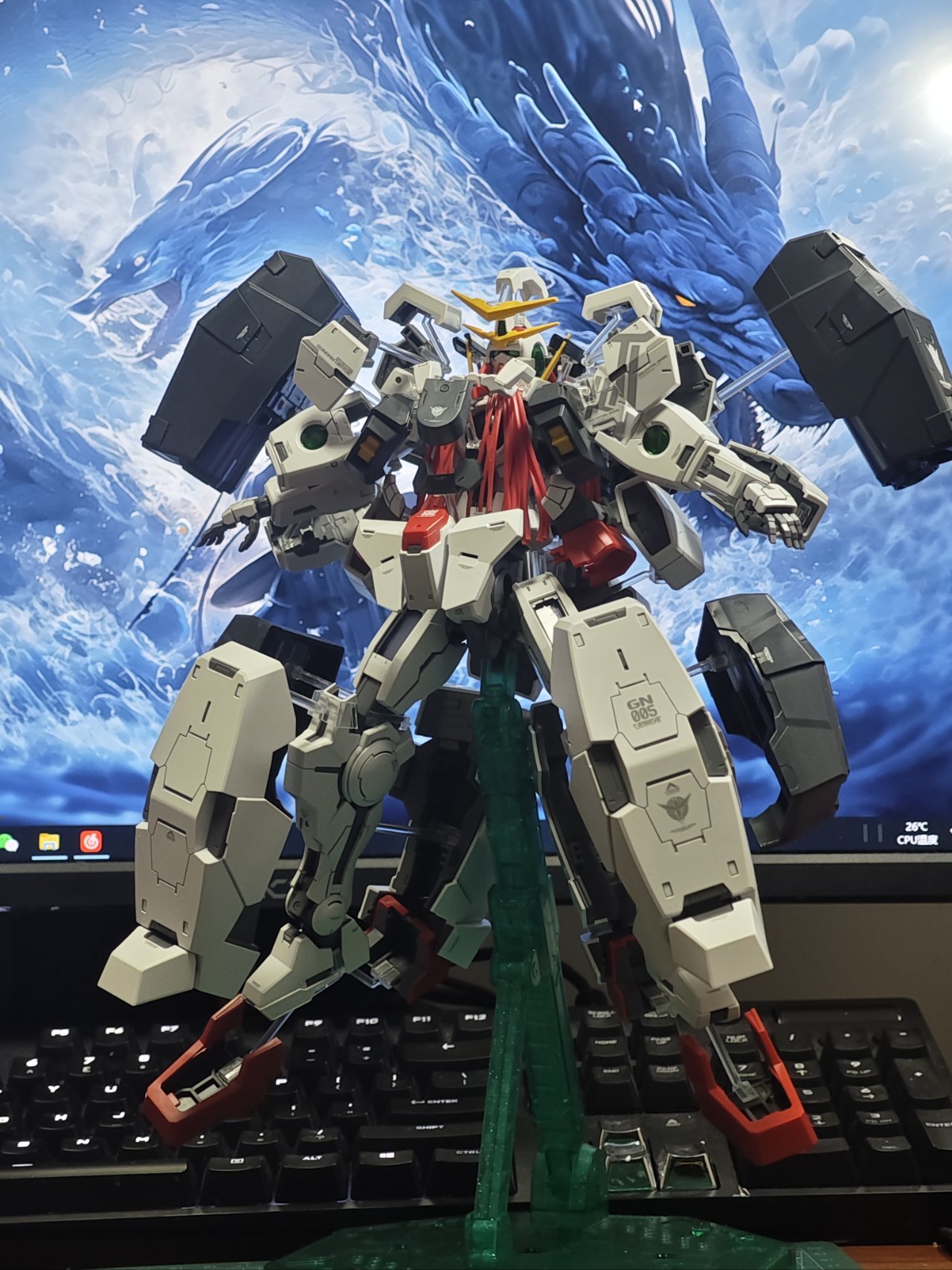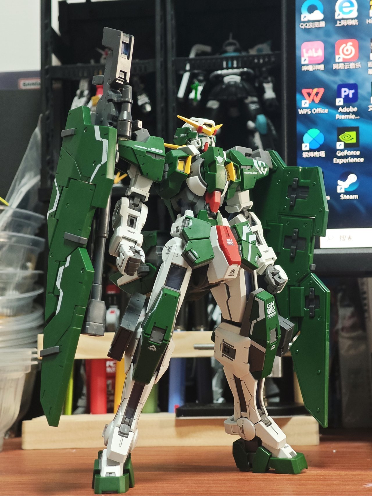 3.萬代mg德天使,上了爆甲支架,整個體積還是不小的,還是很喜歡這些重裝重甲機體的