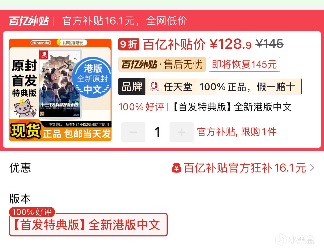 3.NS港版中文游戏《十三机兵防卫圈》128.9元全新包邮,还附带首发特典。