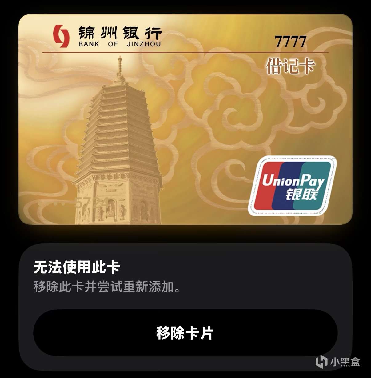 有趣的是,在系統交接前,Apple Pay中的錦州銀行卡片會顯示不可用,雲閃付中則會顯示工商銀行儲蓄卡,但顯示錦州銀行卡面,系統交接完成後,綁定至Apple Pay顯示爲工行靈通卡,不愧是工行