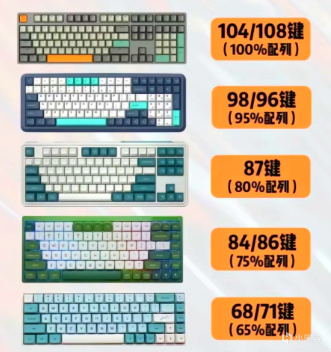 鍵盤佈局:常見的有104鍵,也就是全尺寸,帶數字小鍵盤、87鍵無數字小鍵盤,更緊湊、60鍵迷你款,只有核心按鍵,適合便攜。財務、經常輸入數字的人選104鍵,桌面空間小或筆記本外接選87鍵,追求便攜選60鍵。具體可以看我的另一篇文章。