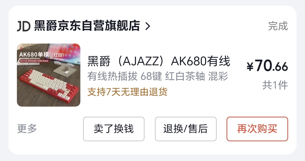 主要是小键盘68键比较小巧不怎么占地方,然后就是这个颜值了哈哈哈,我还真的挺喜欢的