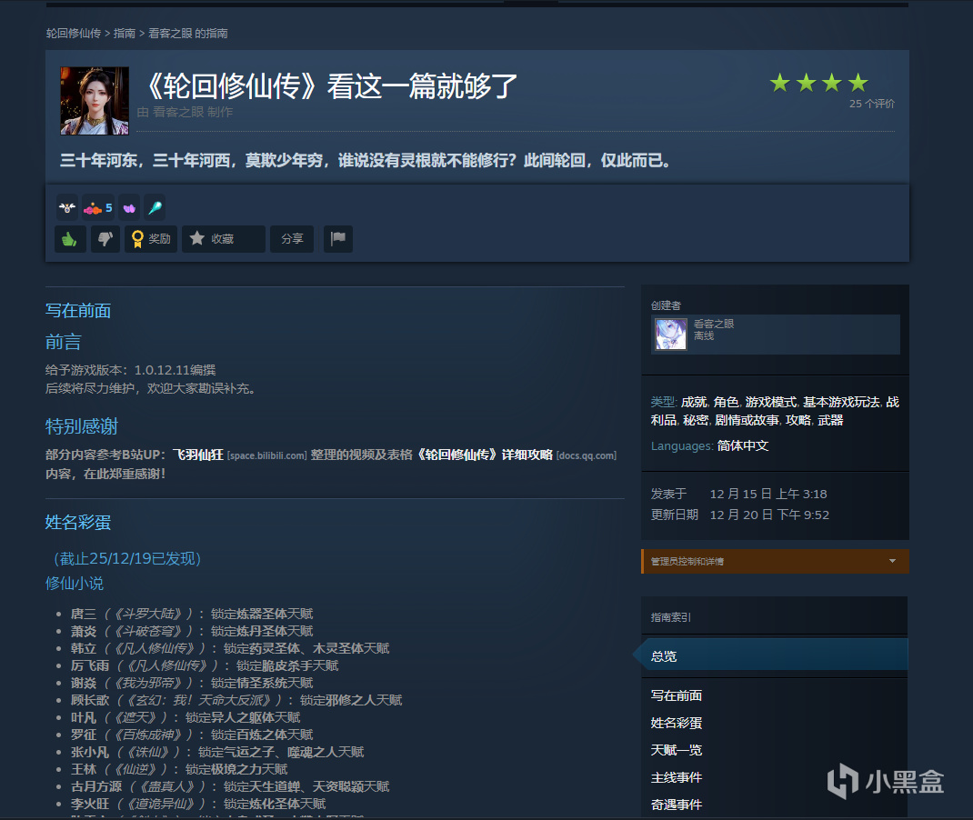 必須來小黑盒專門開一帖感謝咱們《輪迴修仙傳》的寶藏道友——@看客之眼