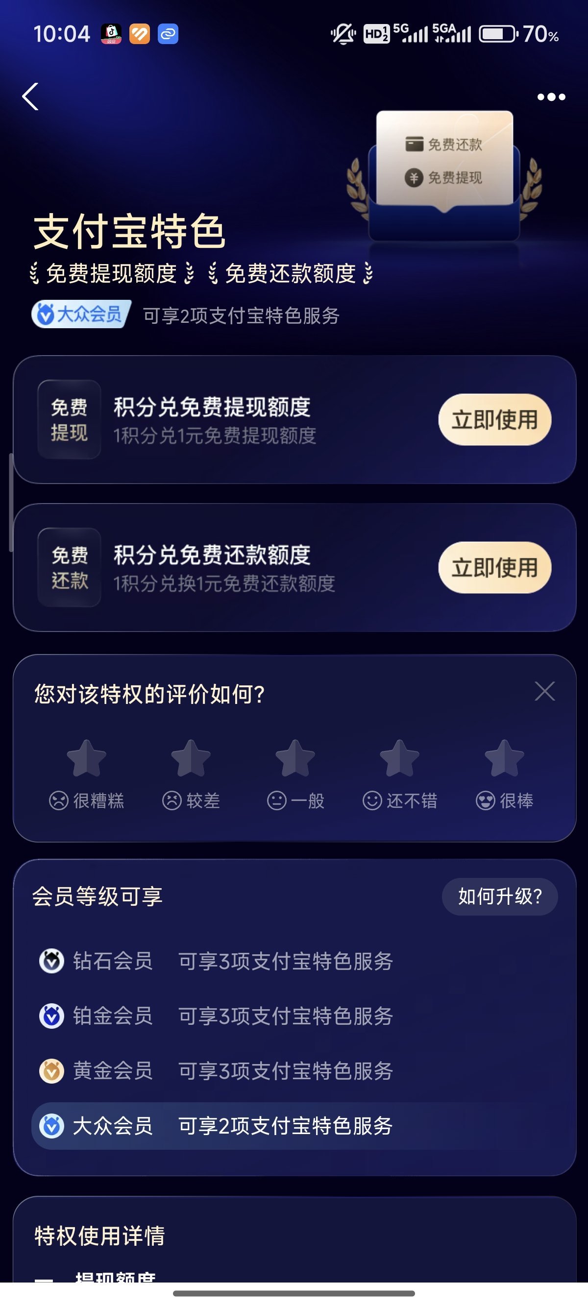 不過zbf可以免費提現的額度比wx多的多。這點我覺得很實用。