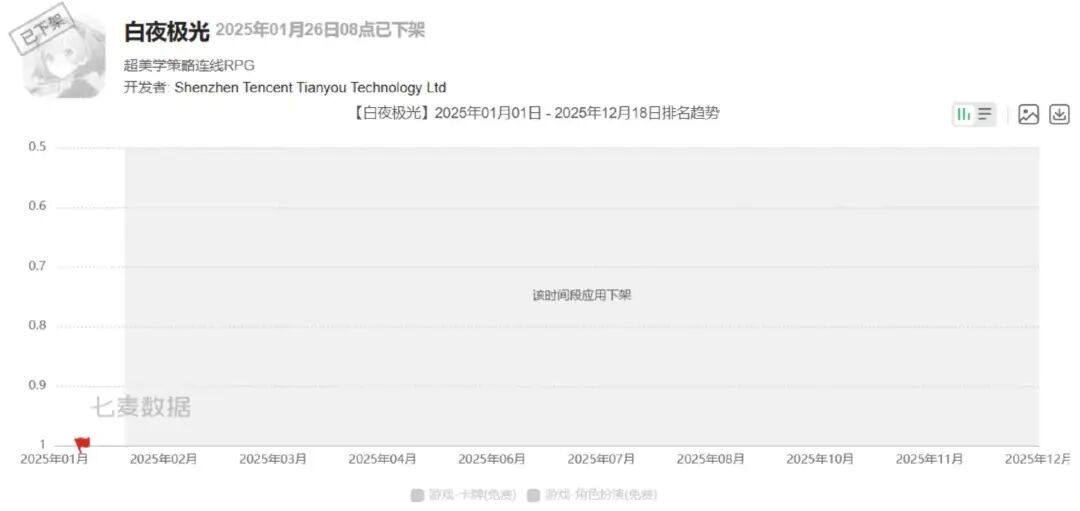 腾讯《白夜极光》是一款二次元战棋游戏,由腾讯旗下子公司永航科技研发,因研发班底的二次元浓度受到认可,这款产品也一度被称为是「腾讯首款纯血二次元游戏」。《白夜极光》国服在2023年6月上线,最高排在iOS畅销榜26名,后续持续下滑,最终在去年12月连续宣告停运了国际服和国服。