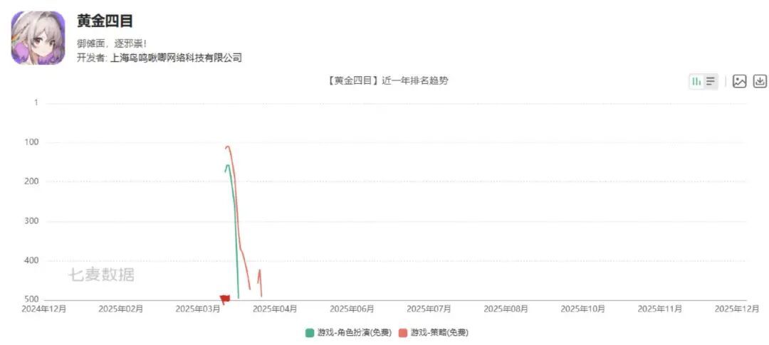 鸟鸣啾唧《黄金四目》是一款国风题材的类RTT游戏,由《崩坏学园2》制作人HAKU领队开发,游戏最初只登陆了TapTap渠道,首月下载量不到10万,后续在iOS渠道上线后同样未能取得什么成绩,免费榜也只是排在角色扮演分类的158名。5月份,游戏就停止了内容更新,7月份,游戏就已经无法进入,至今未能回归到正常运营状态。