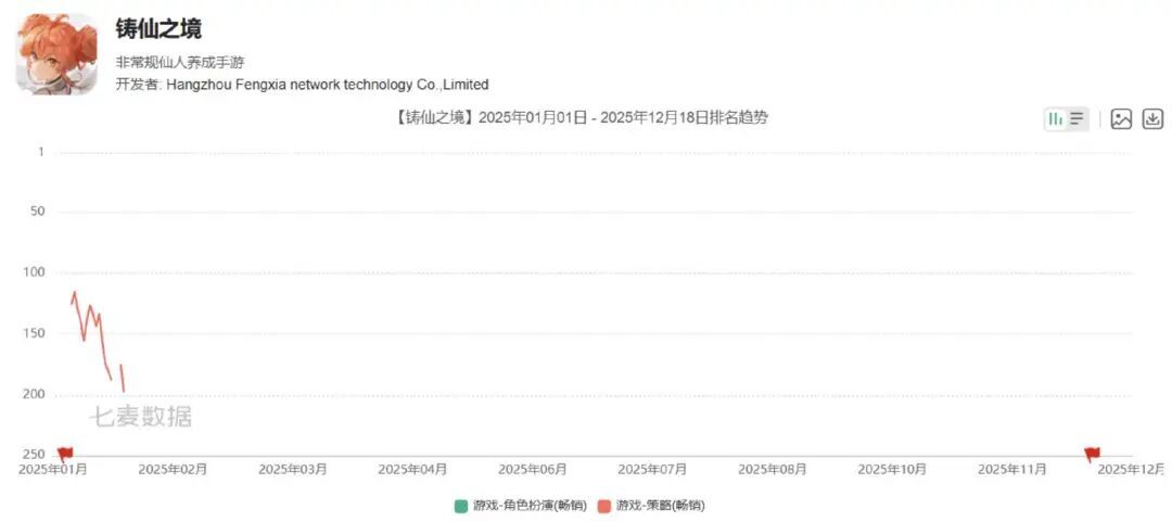 幻爵科技《铸仙之境》是一款修仙风格的「赛马娘like」。幻爵科技创始人月下曾在腾讯魔方工作室就职,参与过《全民农场》《王牌战士》等项目,在2021年出走创业,这款游戏几经大改,缩短了养成时间,整体玩法其实还算有些亮点,很可惜的是,游戏在1月份上线后表现并不佳,连畅销榜都未曾挤进去。