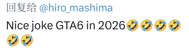 真岛还提到2026年最期待《GTA6》和《怪物猎人物语3》。网友纷纷跟贴回贴,表示真是个好笑话,《GTA6》2026年发布?我知道你们工作很忙,但这份阵容表明你们是认真的游戏玩家!