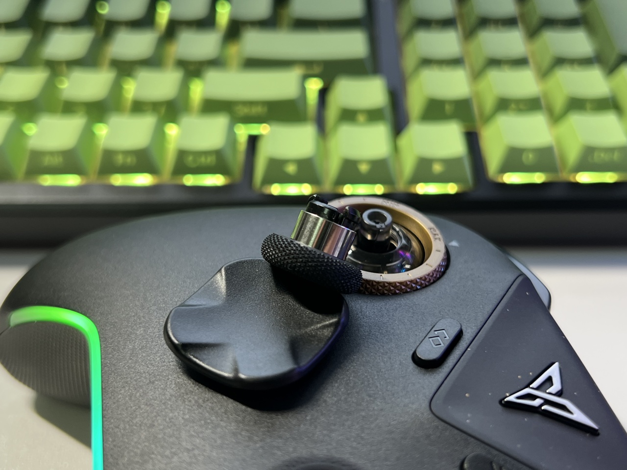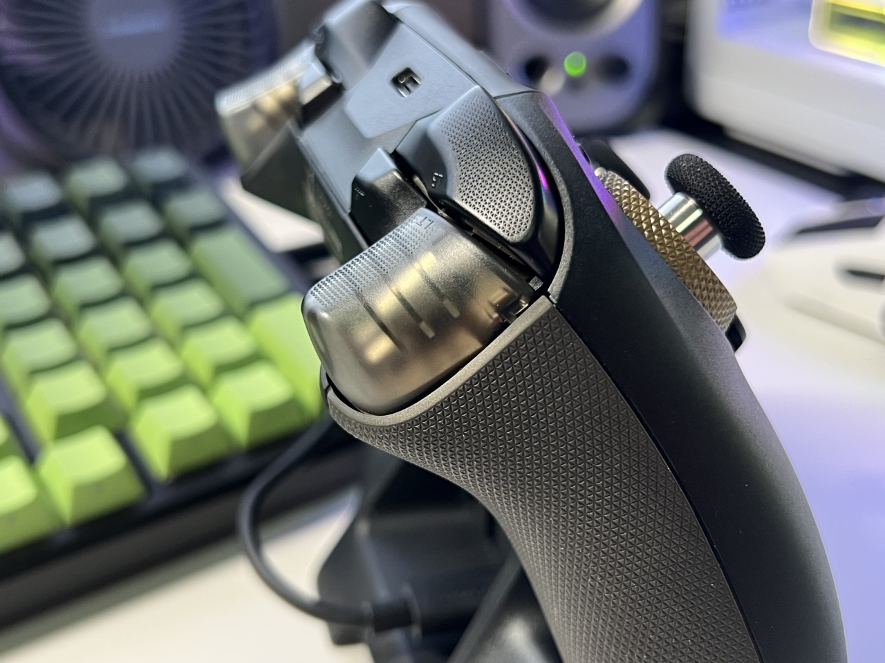 扳机和肩键做了防滑纹处理,肩键按压触底有明显的缓冲,和小肩键一样用的轻触开关,按压力度适中,键程适中。