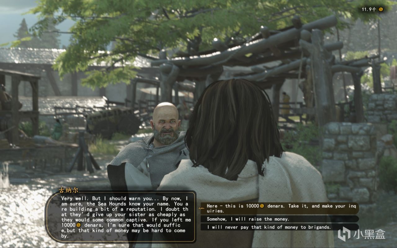 第一次去奥斯蒂港救下古纳尔后,再和古纳尔对话、跳过教程。古纳尔说要去打海猎犬的时候选下面的选项(英文大意是出海对我来说太危险了有没有别的办法),然后古纳尔就会说可以直接交赎金