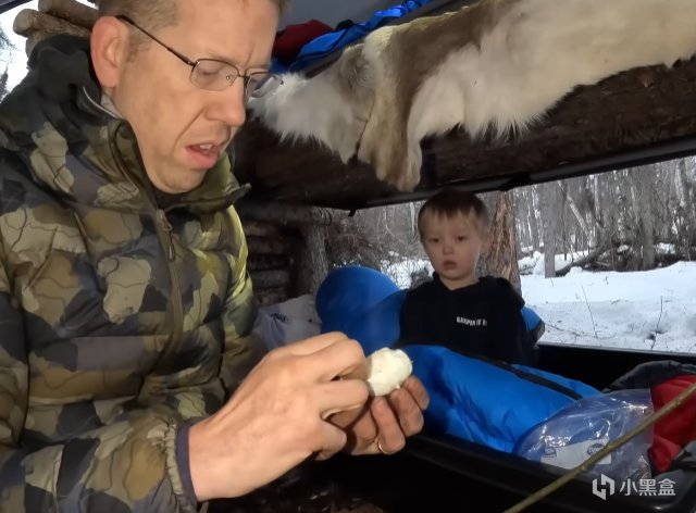 户外的极限环境露营这里面挺少见到父子互动或者带着家人的,这位老哥很注重家庭