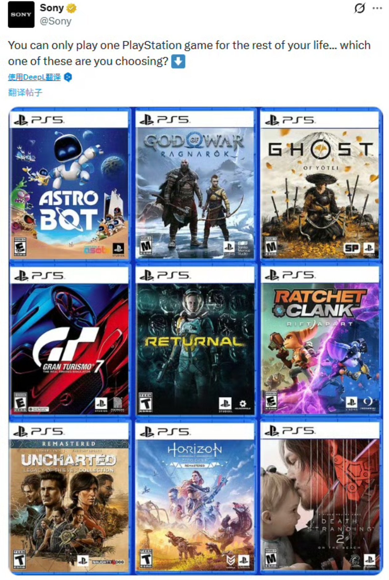 近日,索尼PlayStation官方推特发起一项趣味互动,向全球玩家抛出难题:“如果余生只能玩一款PlayStation游戏,你会如何选择?”该话题迅速引发热议,玩家们在评论区激烈讨论并分享自己的“唯一选择”。