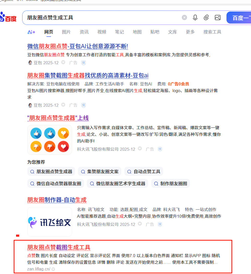 我是直接搜索——朋友圈点赞生成工具。最下面那个就是了