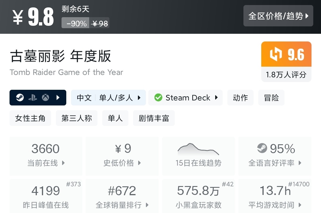 epic送过。steam有三部曲捆绑包。强推!劳拉爬信号塔那一段相当震撼!
