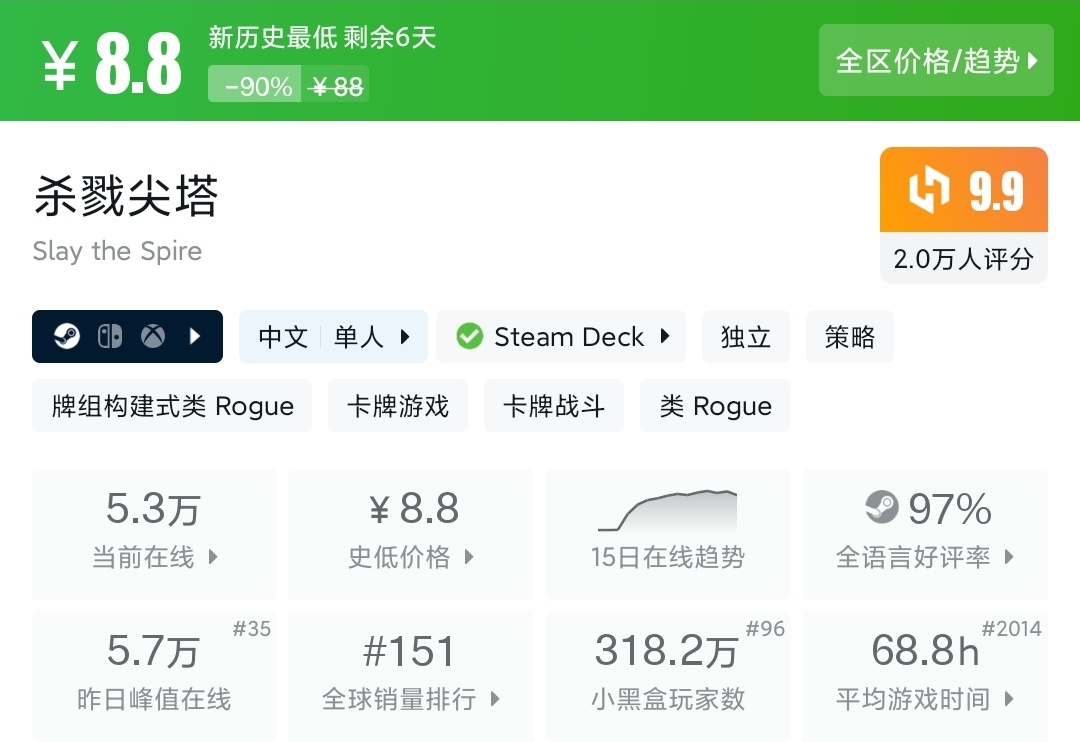 奥利奥爆肝109款,全场个位数!部分游戏也附上了购买建议,并且按照评分排序!希望能对盒友们有所帮助~