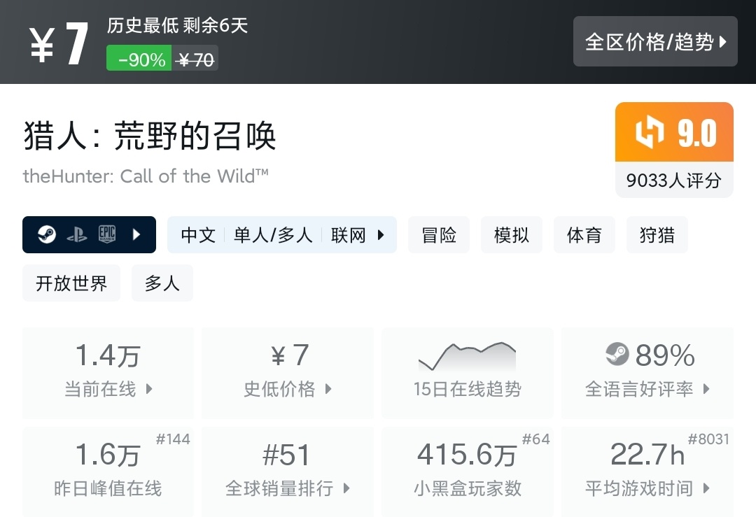 潜行射击,打猎模拟。本体便宜,但大头在DLC