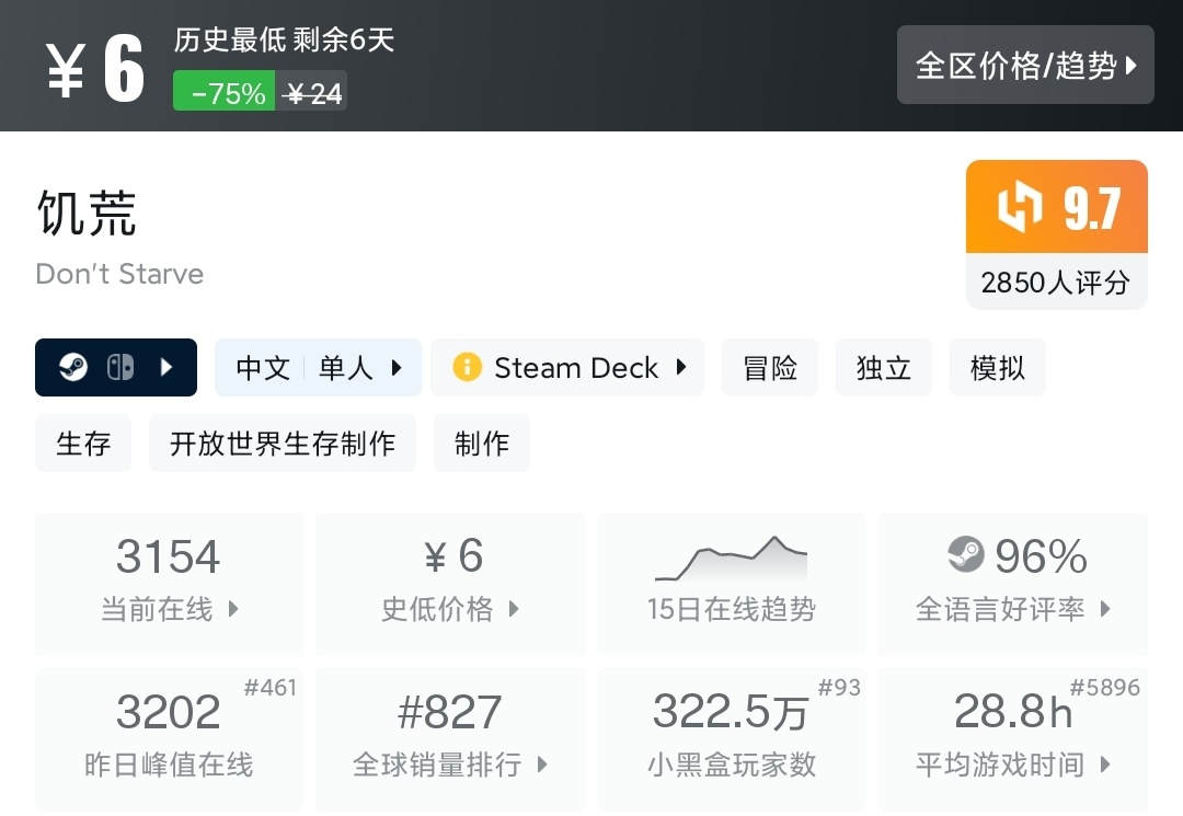 生存建造,一折新史低