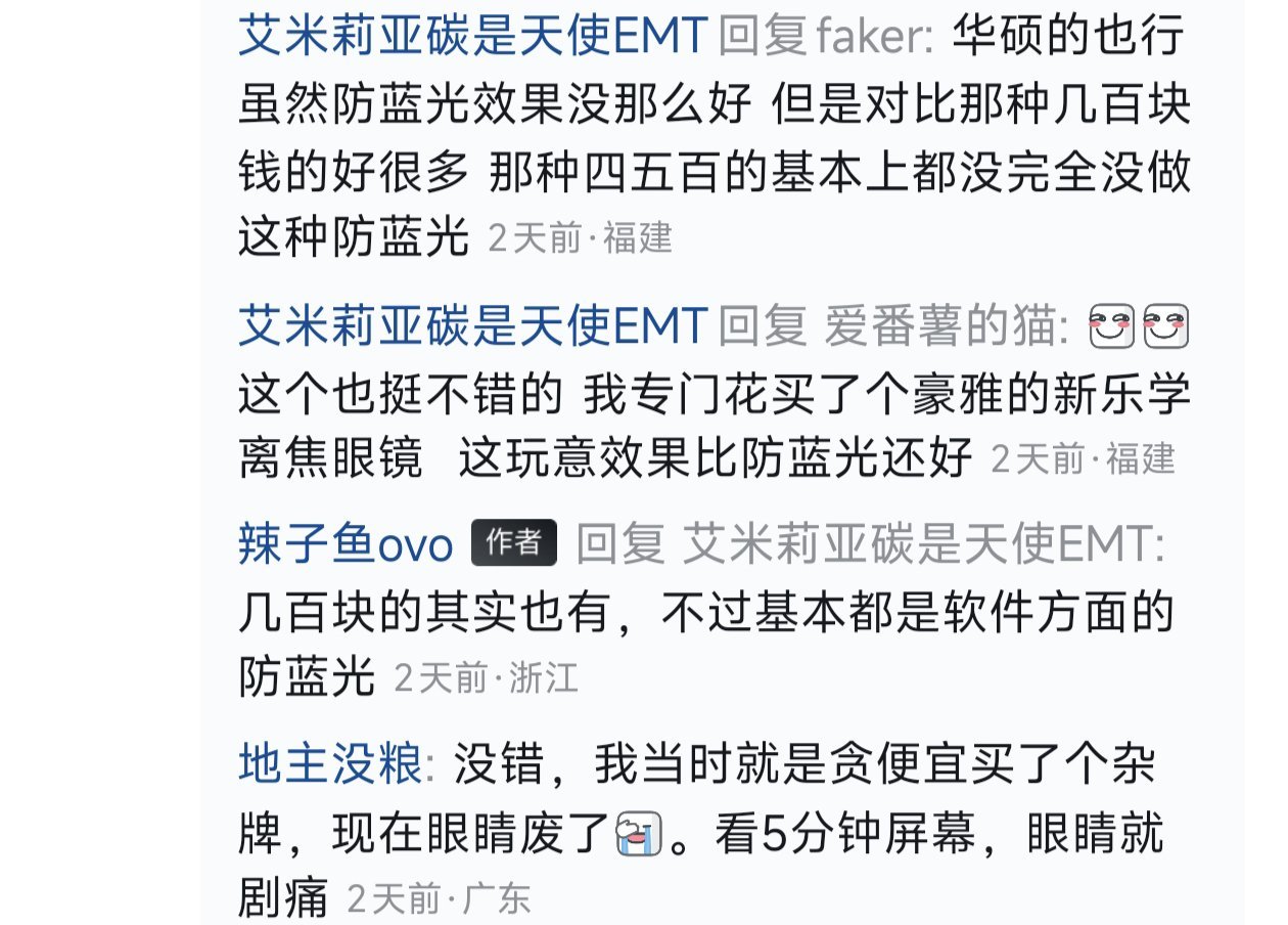 我看之前发的咨询帖子里面有人说有不少低价位显示器宣传有蓝光护眼,但是依旧伤眼睛。这其实就是选的不对,那些其实都是软件层面上的护眼,要选就选有硬件低蓝光的,宣传页面基本都有写,再不济问问客服嘛。