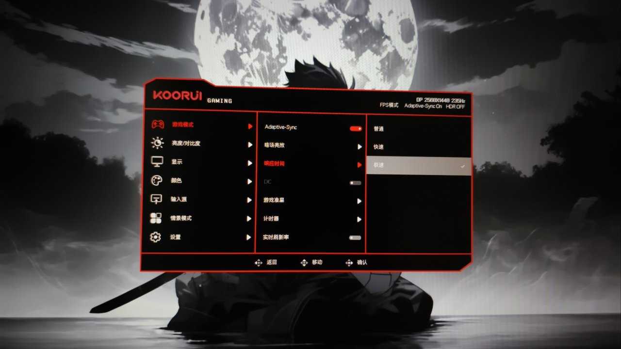 如果各位平日里还喜欢玩FPS游戏,我也非常推荐各位将响应速度调到最低,可以避免游戏出现拖影的情况