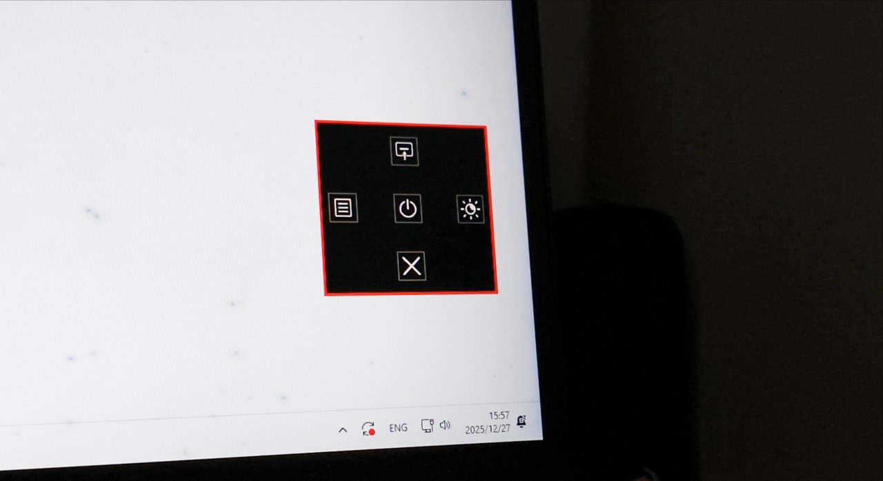 你会发现X5这款显示器并没有采用传统的按键,而是一个类似手柄摇杆的小旋钮,操作方面相比起传统的按键来说会简单不少