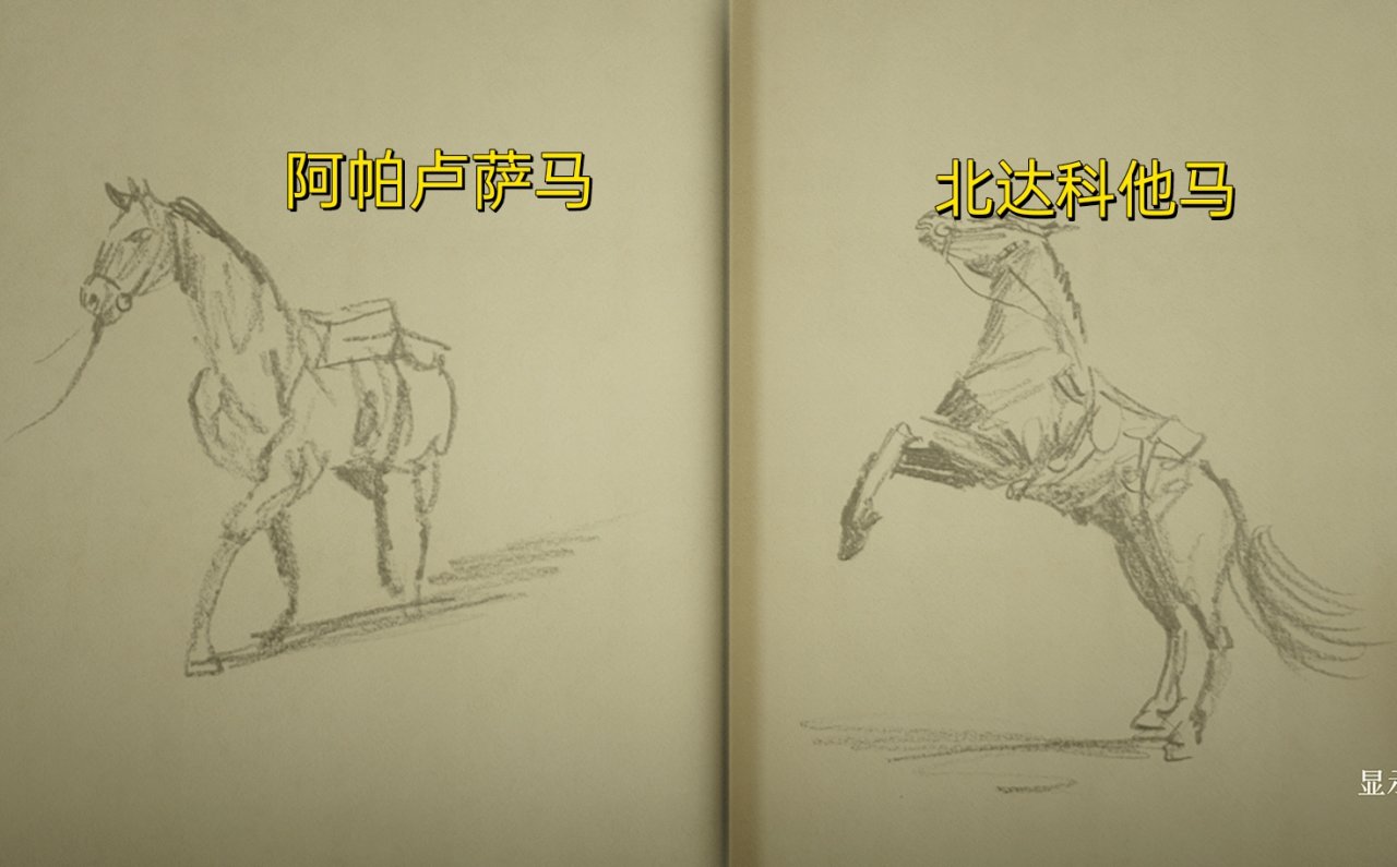需要注意的是北達科他和阿帕盧薩佔1/2,其他馬佔1/4,且部分馬頭朝向不同,