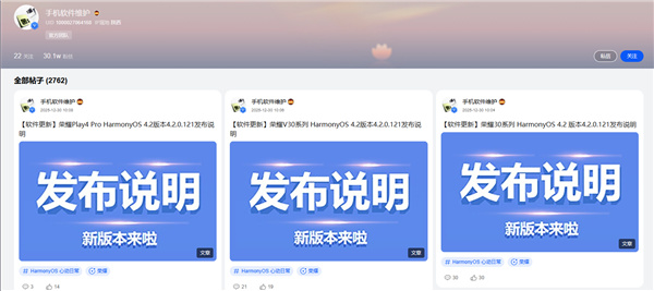 快科技12月31日消息,日前,荣耀Play4 Pro、荣耀V30系列、荣耀30系列等老机型迎来HarmonyOS 4.2.0.121版本更新。
