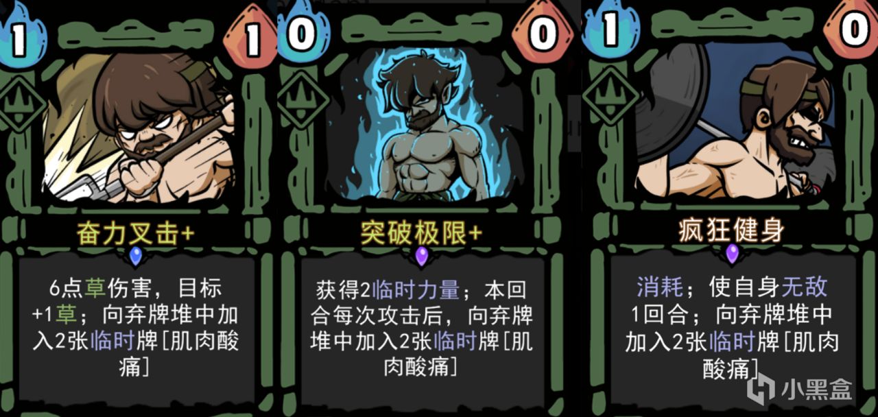 【疯狂健身】:你的安全主任。直接获得1回合无敌状态,确保生存的同时,产生2张【肌肉酸痛】,是调整节奏、抵御致命伤害的救命神器。