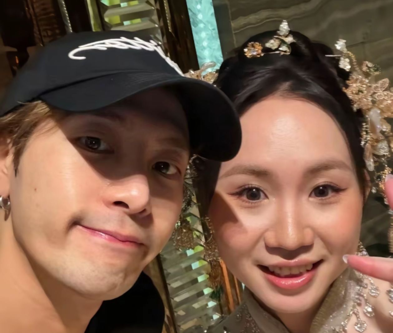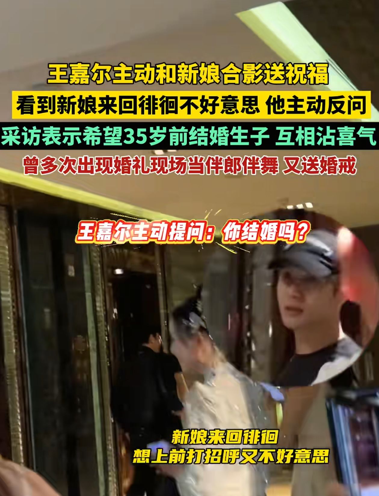 婚礼当天偶遇王嘉尔!王嘉尔主动询问并拿起新娘手机合影本来他不方便但看到是结婚后立马答应