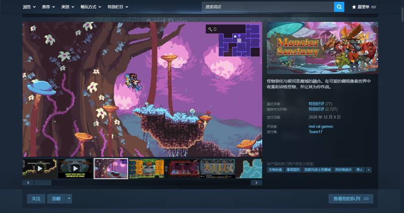 这一切得益于制作组丰富的像素游戏开发经验,他们的上一部作品是怪物收集游戏品类中的知名神作:《怪物圣所》,积累了上万条Steam评论,91%的特别好评。