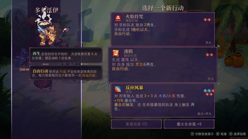 战斗积累经验怪兽升级,有趣的来了:怪兽将随机获得主被动技能,技能池不固定,随着你的队伍构成改变。比如1号位怪兽“类型”是“燃烧”“暴击”“驱散”,2号位怪兽带“治疗”“再生”“力量”,那1号位怪兽升级后就可以选到除“燃烧”“暴击”“驱散”外,“燃烧+以太”“再生+暴击”这种复合型技能。