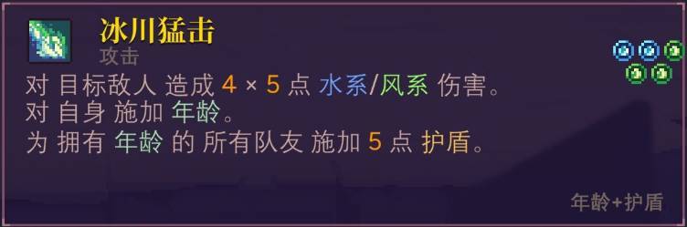 可以简单把这个“年龄”当作一个没有直接效果的计数器,某些技能效果可以针对你队伍的“老资历”程度,叠加强度,比如: