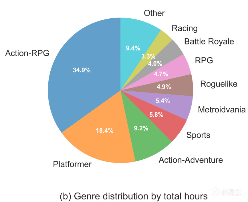 动作角色扮演游戏(比如《黑暗之魂》《艾尔登法环》)占 34.9%