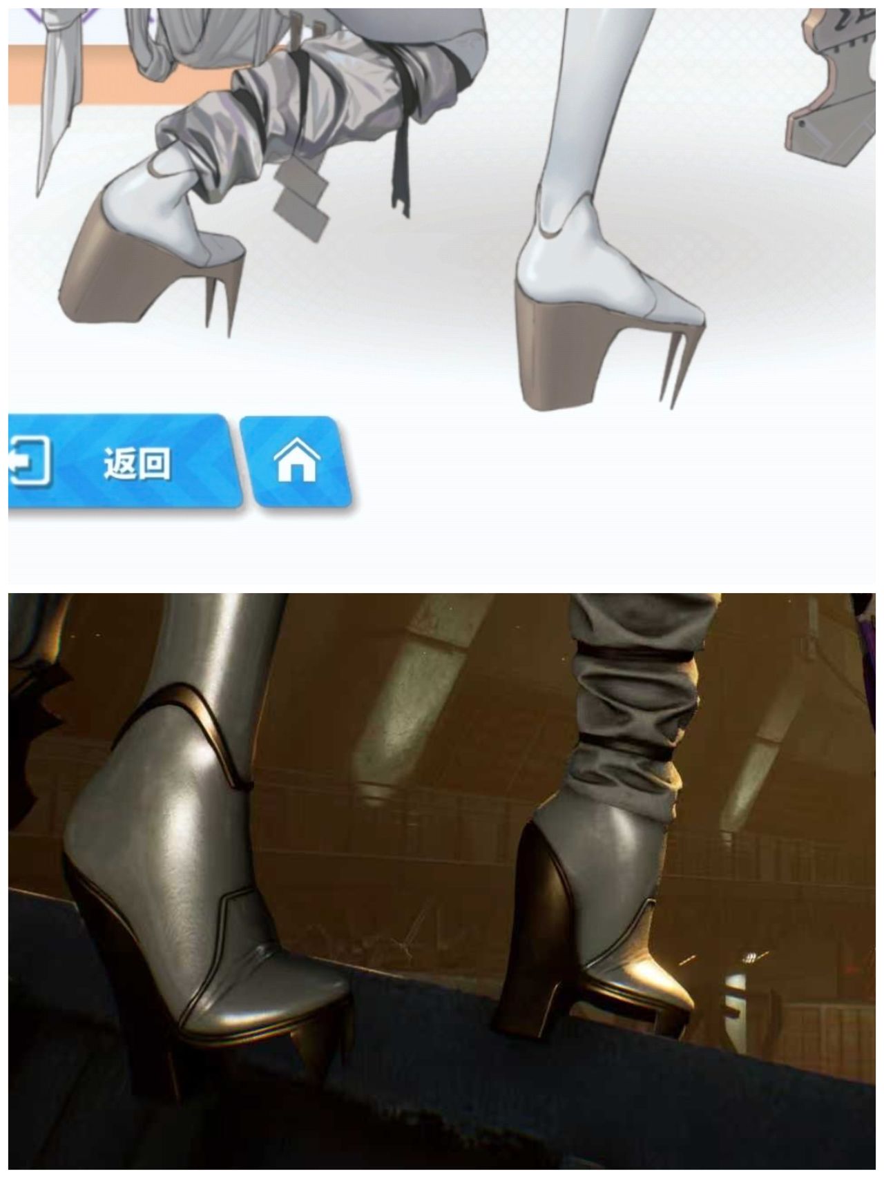 ④这对鞋子的前跟在3D之后不像原画的恨天高,估计是金大师都觉得太离谱了