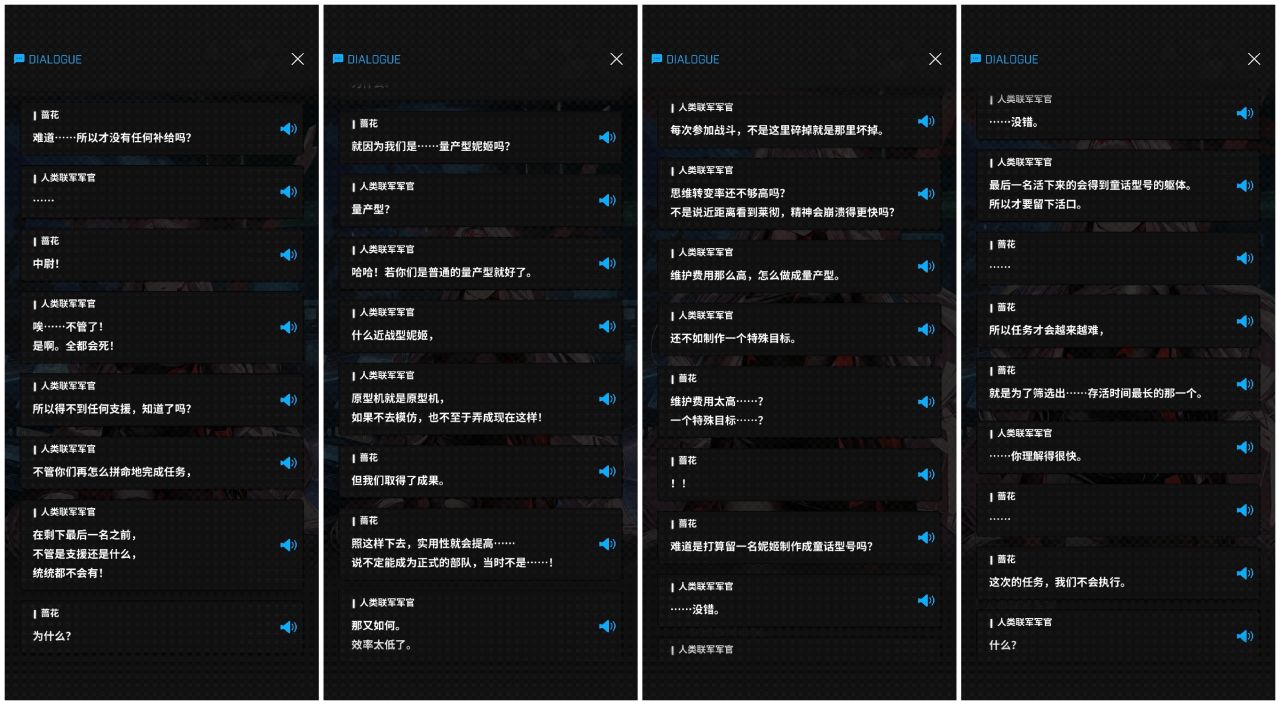 剧情是这样的,说是有一个好企业,要生产妮姬的童话型号机体,并且想出一个馊主意,以前的机体都是为了远程作战设计的,基本都是用枪,为了更新而更新新的机体,于是决定制作近战形的妮姬。也就是近战部队,这个近战部队的养成方法很简单,委派她们去做任务,随着在战斗的过程中折损,最后活下来那只就是近战技巧最好的那只,再把这一只改成童话机体就便宜多了。